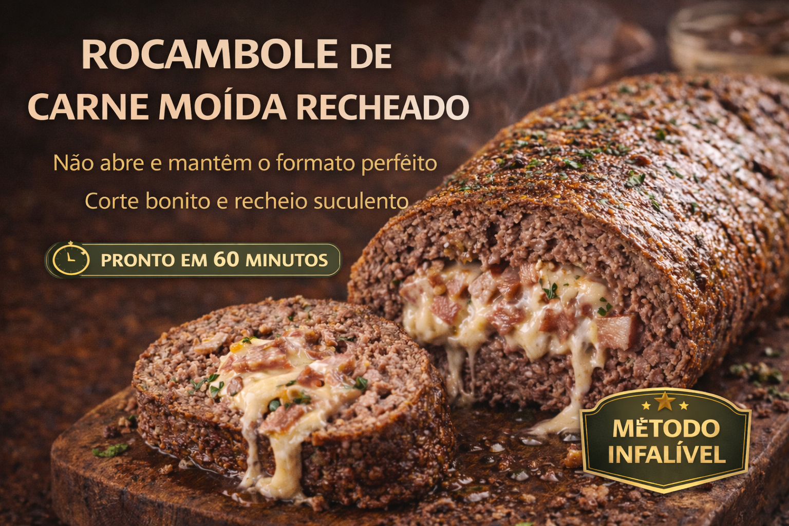 O rocambole de carne moída recheado é a prova de que técnica e simplicidade podem coexistir de forma perfeita. Quando você entende por que a massa precisa de ligantes, por que o enrolamento deve ter tensão e por que o descanso pós-forno é inegociável, o resultado deixa de ser uma questão de sorte e passa a ser uma certeza.