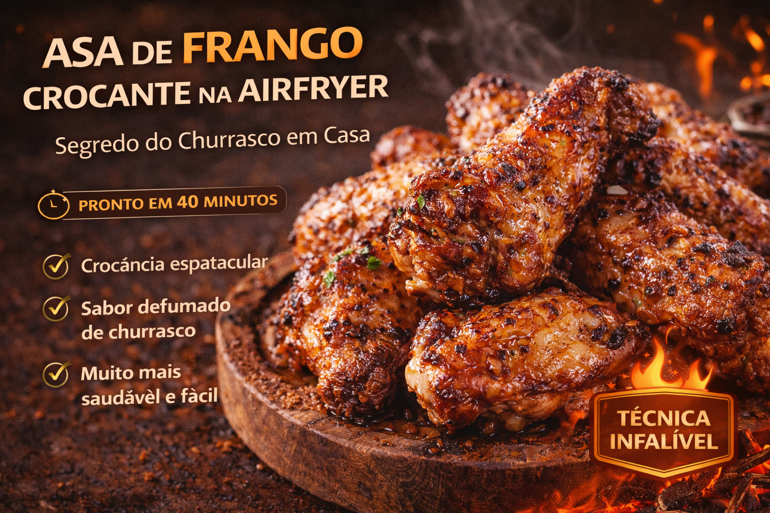 Se você já tentou fazer asa de frango na airfryer e ficou decepcionado com uma pele murcha, sem aquela crocância de boteco, saiba que o problema quase nunca está no equipamento — está na técnica. A diferença entre uma asa de frango comum e uma asa verdadeiramente estaladiça está em um processo científico de desidratação superficial que pouquíssimas receitas explicam de verdade. Neste guia completo, você aprende o método correto, com embasamento técnico e resultado de churrascaria artesanal direto da sua cozinha.