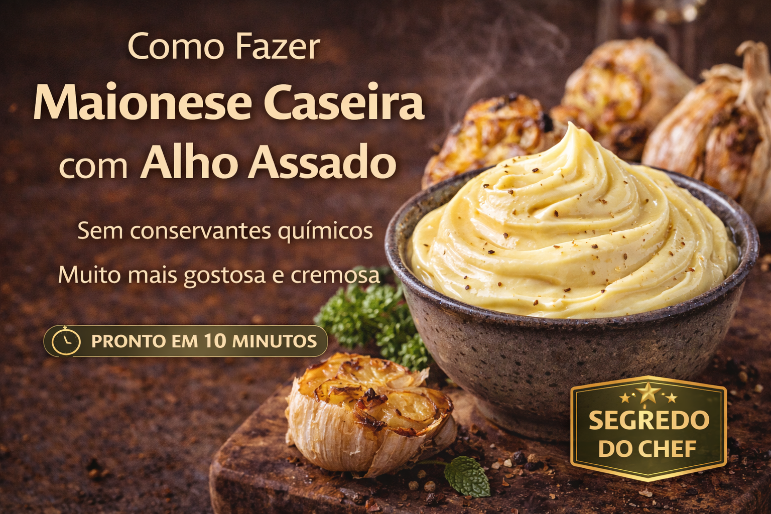 A maionese caseira de alho assado é daquelas receitas que mudam a forma como você vê um condimento simples. O processo de assar o alho transforma completamente o sabor — do pungente para o suave, do cru para o complexo — e o resultado final é uma maionese com personalidade, muito superior a qualquer versão industrializada. Teste em casa, ajuste os temperos ao seu gosto e deixe nos comentários como ficou. Se tiver uma variação favorita, compartilhe também.
