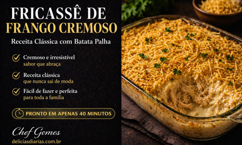 O fricassê de frango é uma daquelas receitas que nunca saem de moda. Cremoso, gratinado, fácil de fazer e sempre aplaudido à mesa — é o tipo de prato que transforma qualquer refeição em uma ocasião especial.