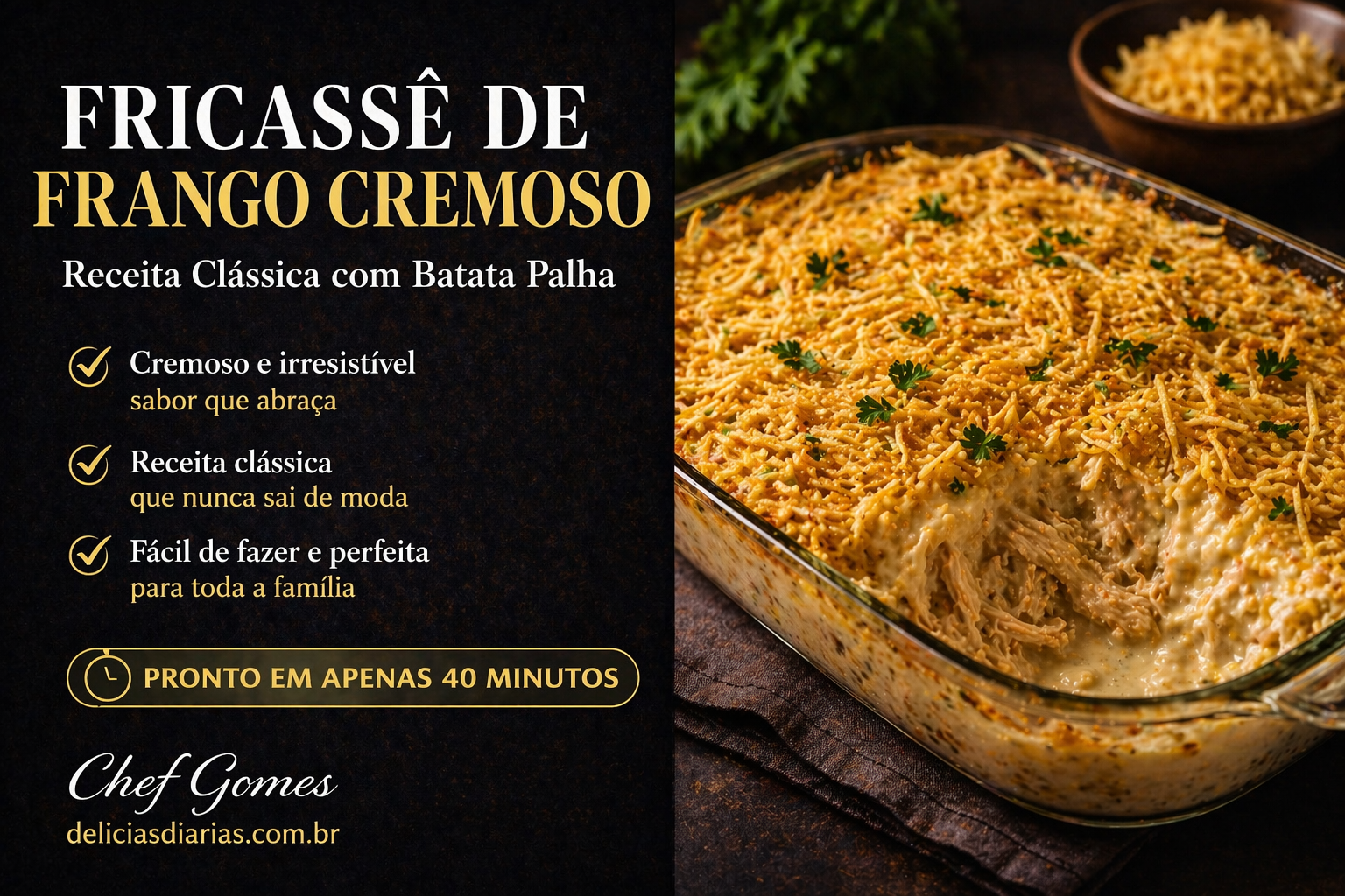 O fricassê de frango é uma daquelas receitas que nunca saem de moda. Cremoso, gratinado, fácil de fazer e sempre aplaudido à mesa — é o tipo de prato que transforma qualquer refeição em uma ocasião especial.