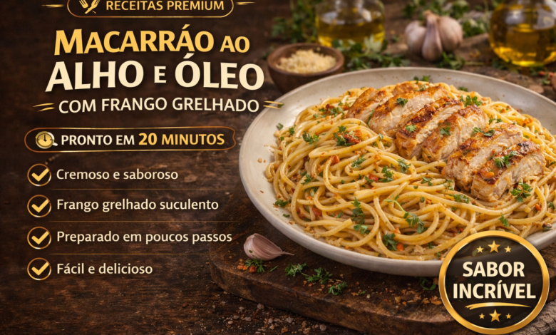 O macarrão ao alho e óleo com frango grelhado é uma receita que nunca decepciona — prática, saborosa, econômica e completa em proteína e sabor. Com o segredo da água do cozimento e o cuidado no dourado do alho, você vai tirar um prato de nível restaurante na sua própria cozinha.