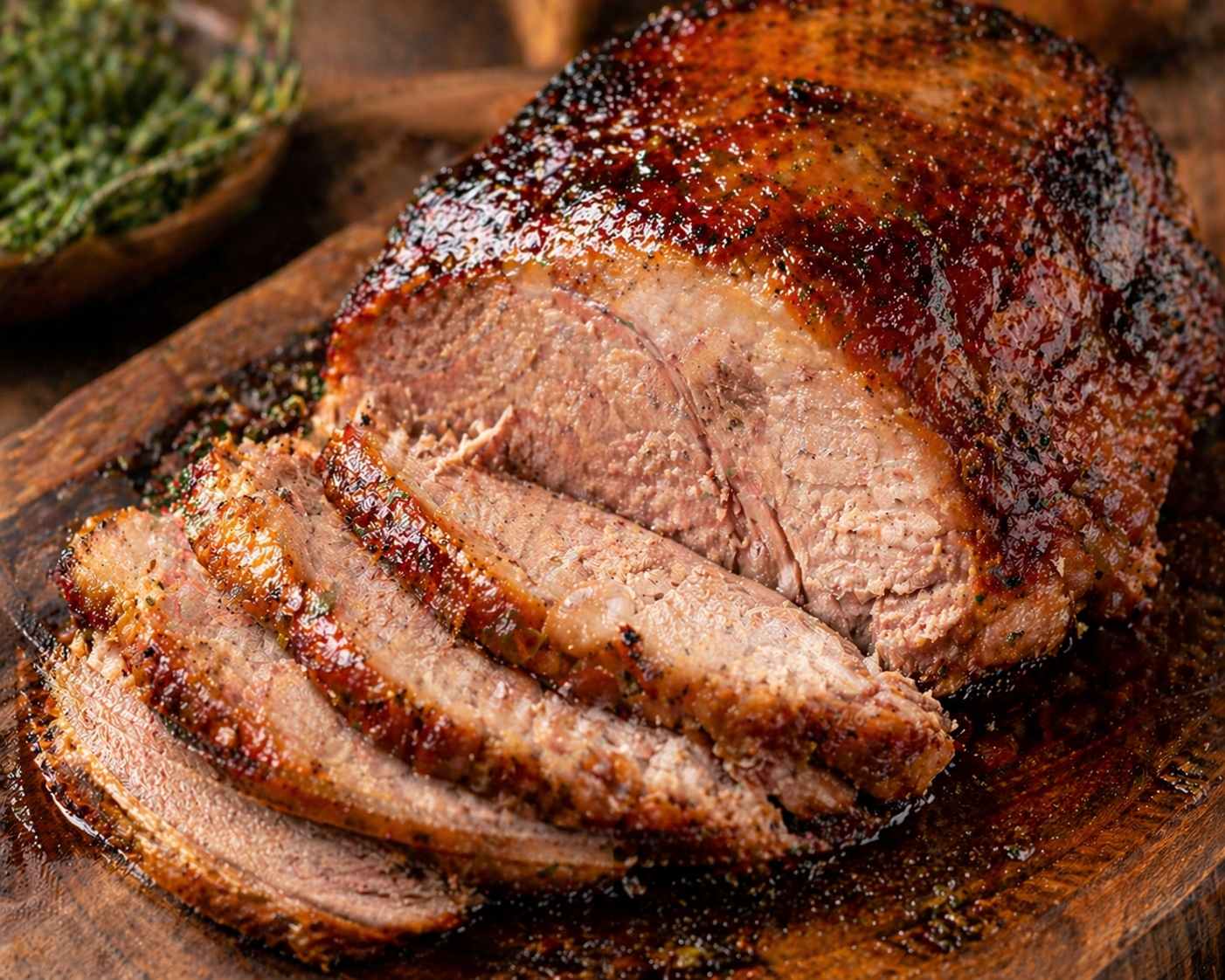 O pernil é retirado da parte traseira do porco e é considerado um dos cortes mais nobres do suíno. Tem uma quantidade equilibrada de gordura — suficiente para manter a carne úmida durante horas de forno, mas sem excessos que pesem no prato. Quando bem marinado e assado lentamente, o colágeno presente nas fibras se transforma em gelatina, deixando a carne com aquela textura que se desfaz levemente ao garfo sem perder a estrutura.