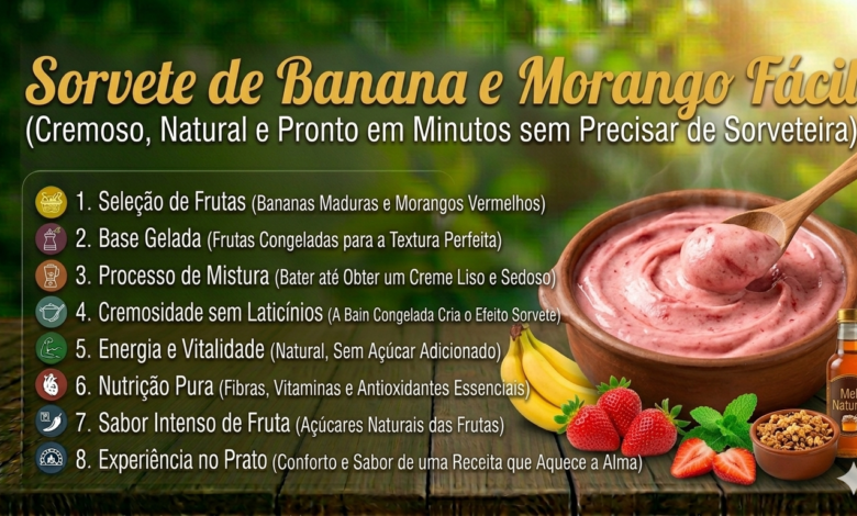 Sorvete de Banana e Morango Fácil: Cremoso, Natural e Pronto em Minutos sem Precisar de Sorveteira